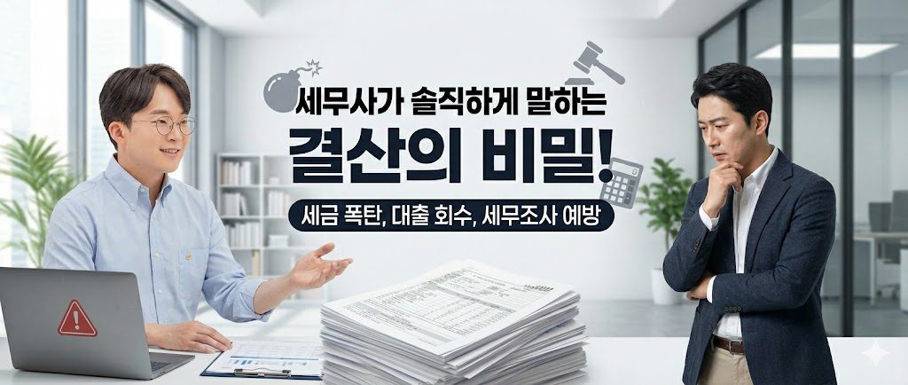 세무사가 솔직하게 말하는 결산의 비밀! 연말 결산, 그냥 세무사에게 맡기면 끝이라고 생각하셨나요? 대표님의 작은 무관심이 세금 폭탄, 대출 회수, 세무조사라는 무서운 결과로 돌아올 수 있습니다. 이 글을 끝까지 읽으셔야 하는 이유입니다.