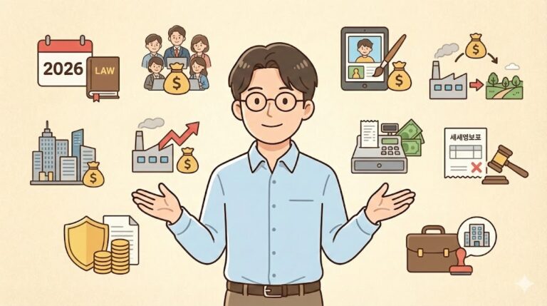 2026년 세법 개정, 무엇이 어떻게 바뀔까요? 내년 살림살이 계획에 꼭 필요한 세금 변화의 핵심만 모아, 소중한 내 자산을 지킬 수 있는 합리적인 절세 전략을 알기 쉽게 설명해 드립니다. 안녕하세요, 소중한 자산의 가치를 지키는 길에 든든한 동반자가 되어드리는 세무법인…
